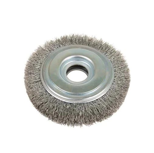 Wire wheel composed of crimped carbon steel wire 0.3mm Designed for application on a drill or pneumatic apparatus This mounted crimped brush is used to remove less resilient surface contaminants from steel or for more of a polishing application In a DIY setting or small difficult to reach areas